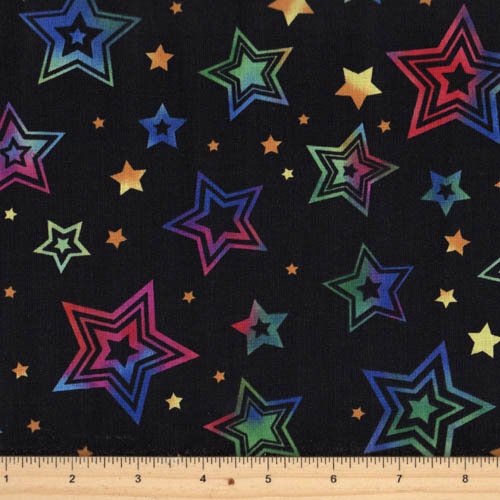 Skip to contentHome > Shop > Online Fabric Canada > Novelty Prints > Party On Black with Multi-Coloured Stars