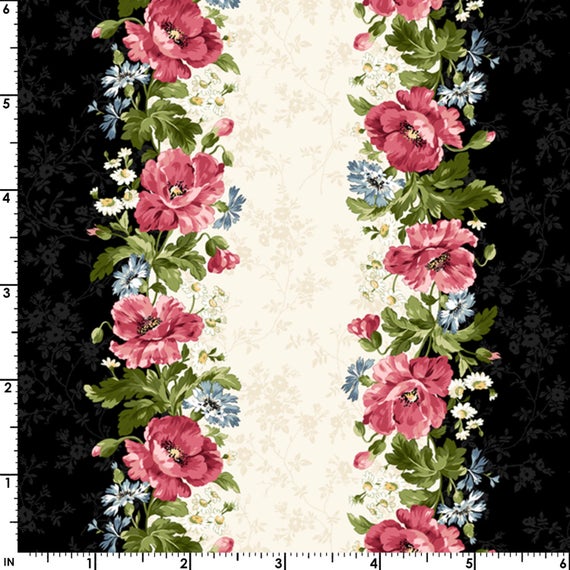 Skip to contentHome > Shop > Online Fabric Canada > Blenders /Tonal/Background > Poppies Flowers with Greenery with Black Border Print