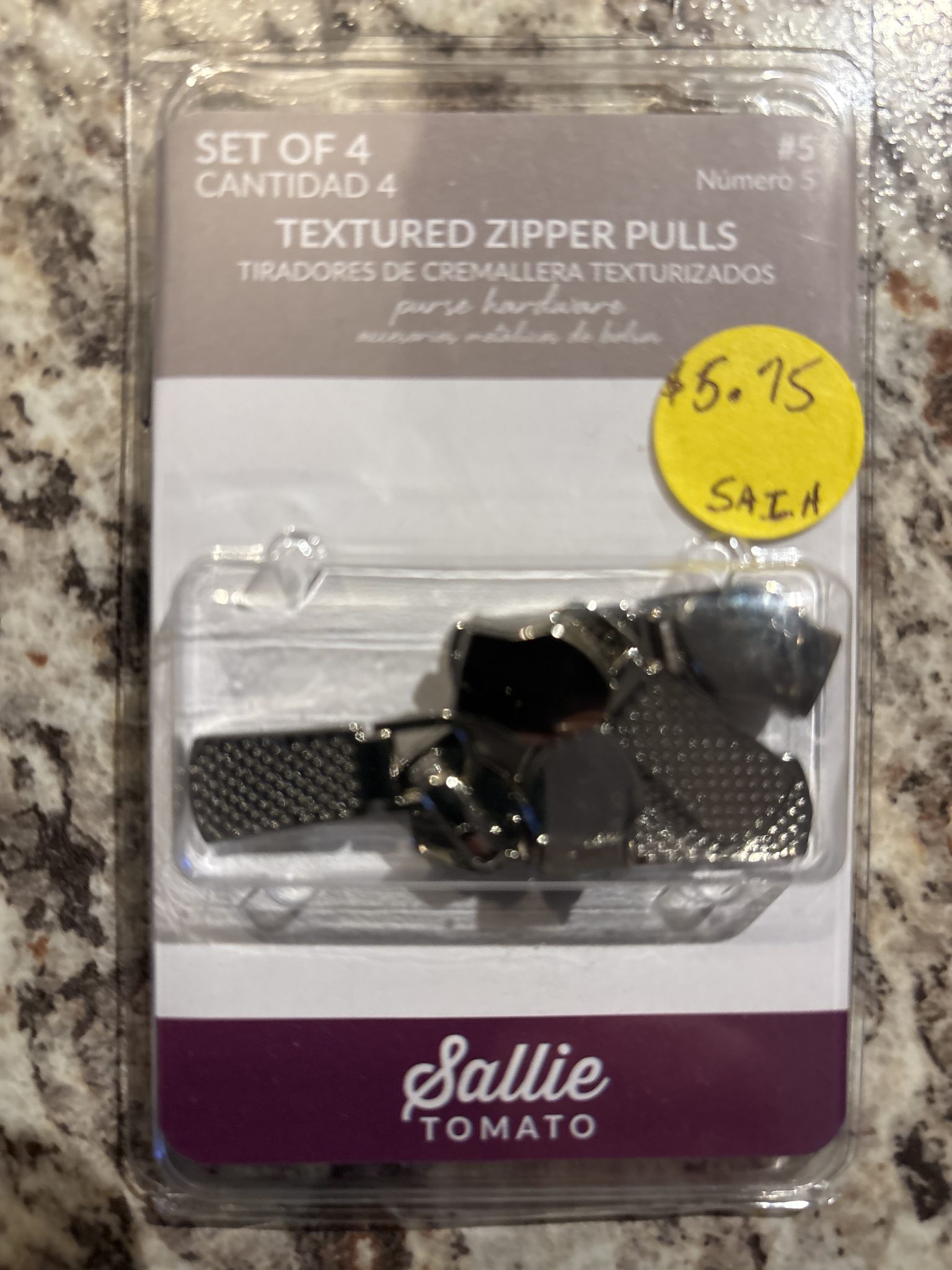 Sallie Tomato Textured Silver Zipper Pulls #5