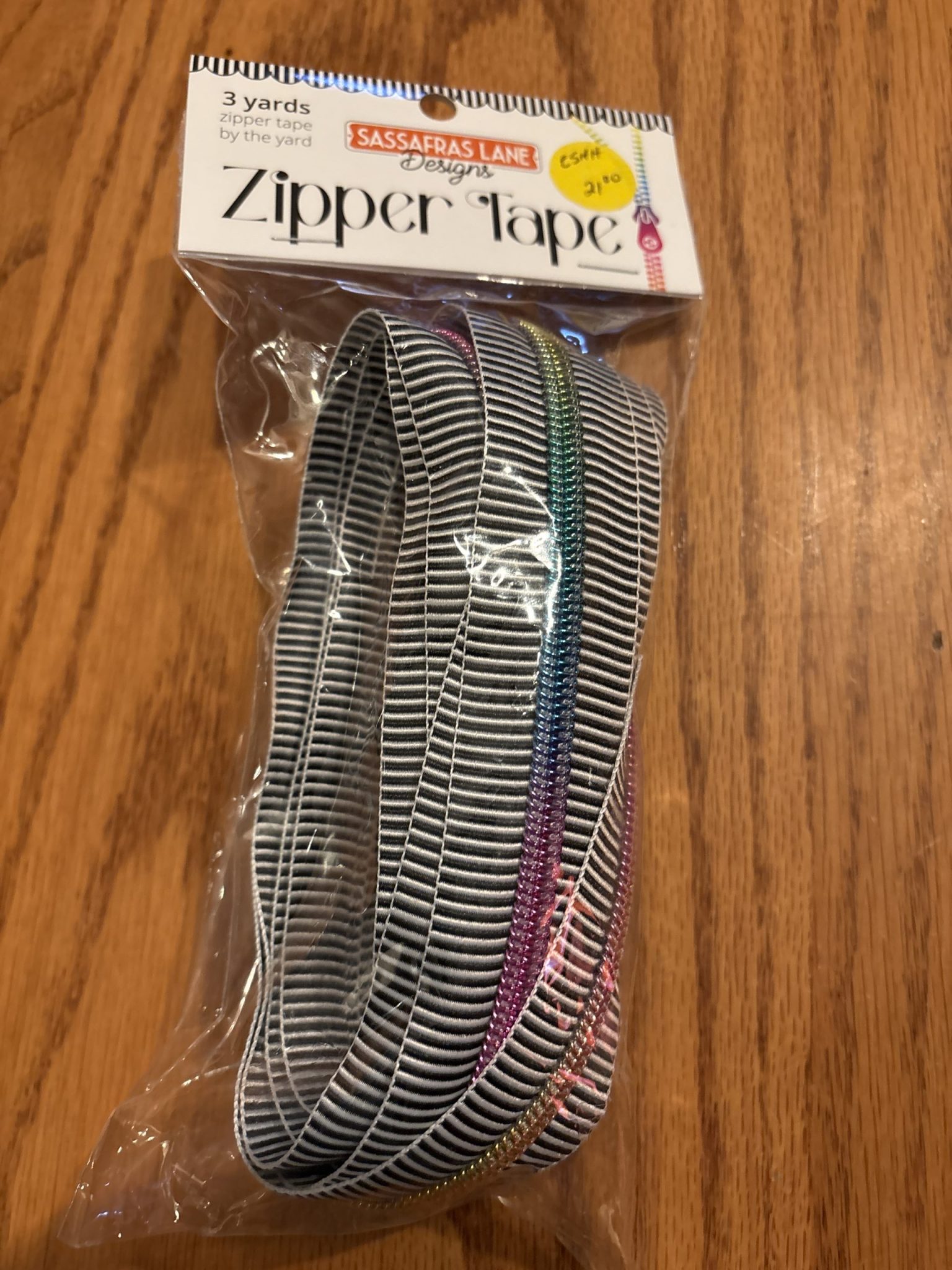 Sassafras Lane Black White Stripe tape with Rainbow Zipper