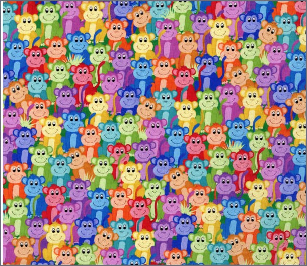 Brightly colored monkeys all over print